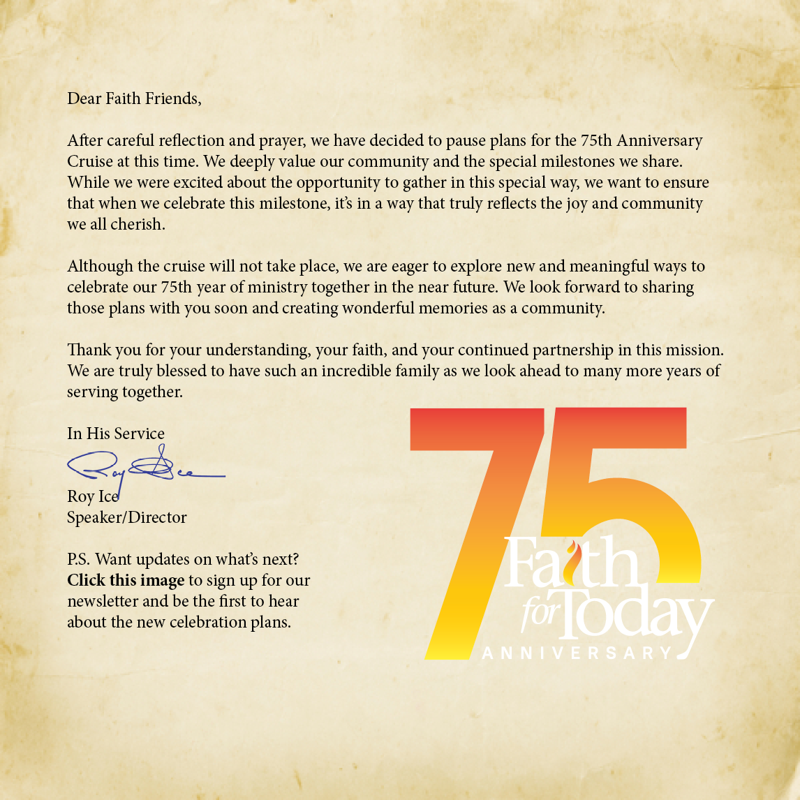 Faith For Today Cruise. Click on the banner to find out more.